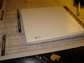 Brush on your Mod Podge....I'm thinking that one of those foam brushes would work WAY better than a paint brush....I just didn't have one....