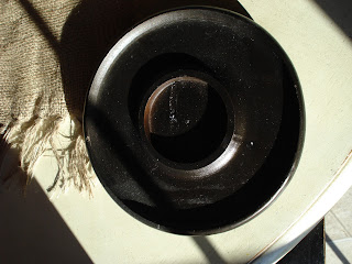 (Can you tell what is next to be sprayed?????)I am thinking that for Christmas, it would look nice filled with pinecones and a white candle, tied with a bow and greens around the bottom.
