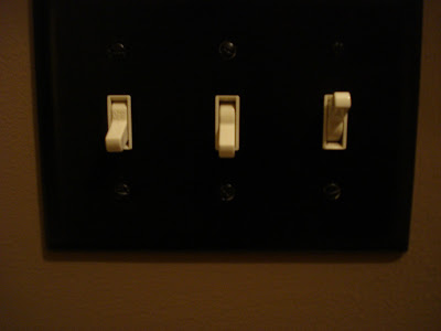 After I finished my "fake" wainscoating in our hallway, I realized that my off-white light switches looked drab compared to the white bottom. So....Krylon's ORB to the rescue.